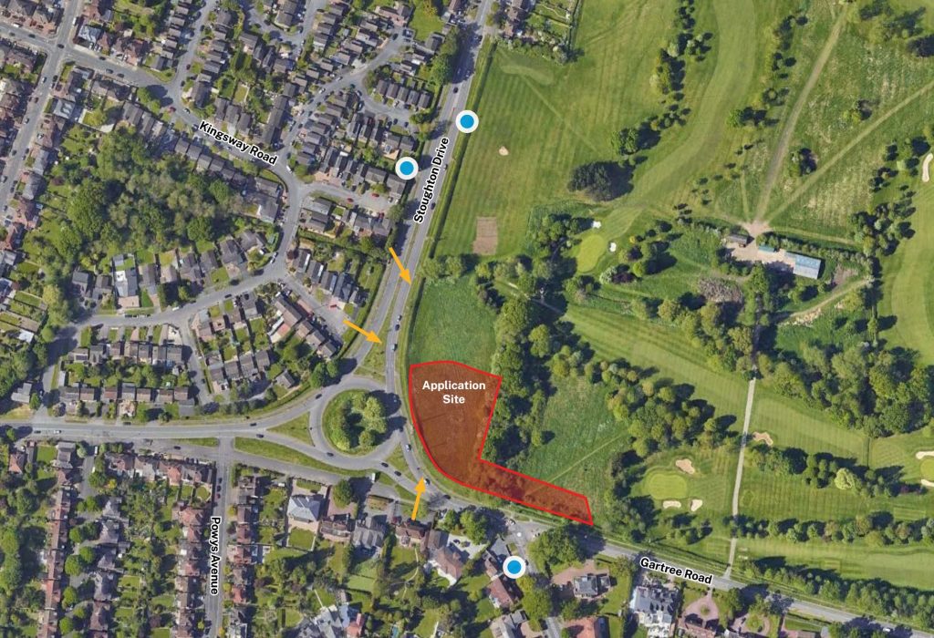 The site is greenfield, with dense tree cover as an aspect of the golf course on the eastern boundary and the Evington Brook to the north.
